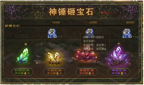 【宝石特惠】神锤砸宝石,实力翻倍升! 活动范围:6月9日(含)之前所有已开在线服 参与要求:已开启宝石功能 活动时间:6月16日0点至6月17日24点 活动内容:活动期间,活动将记录通过宝石工坊、祭祀、资源副本、宝 ...