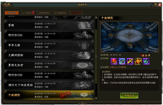 【风云无双】十面埋伏活动 亲爱的小伙伴们,【风云无双】十面埋伏活动隆重上线,欢迎各路英雄豪杰鼎力支持,积极参与,超多奖励超大惊喜等你来体验 活动简介【十面埋伏】活动为连服活动,每周一晚活动时 ...