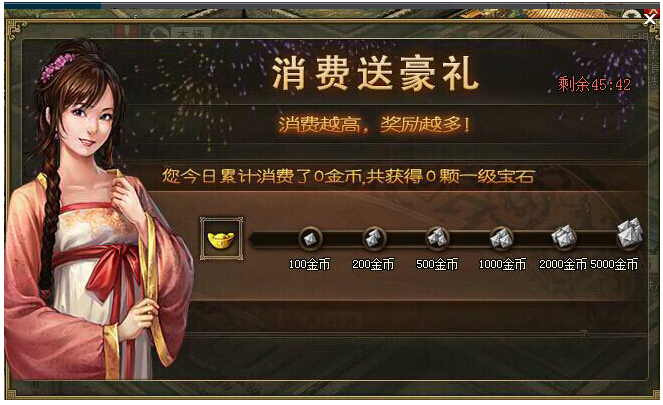 【福利风暴】累计消费送镔铁,送宝石! 活动范围:9月9日(含)之前已开所有服活动时间:9月16日0点至9月17日24点参与条件:已开启铁矿功能的玩家活动内容:活动期间内,不同等级段内的玩家,金币消费累计达到以下要 ...