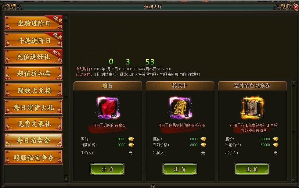 【风云无双】每日拍卖活动 & ...