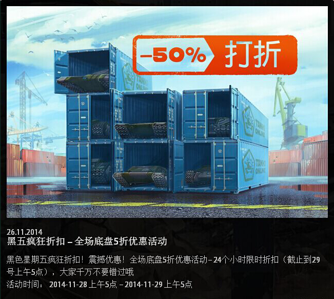 活动时间: 2014-11-28 上午5点 – 2014-11-29 上午5点 黑色星期五疯狂折扣!震撼优惠!全场底盘5折优惠活动– 24个小时限时折扣(截止到29号上午5点),大家千万不要错过哦 ...