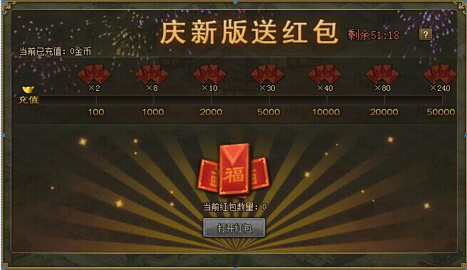 活动一 【庆新版】充值送“红包”,红包双倍赠送!适逢新版更新,充值送“红包”活动升级,充值保持原额,“红包”双倍赠送,“红包”拿到你手软,机不可失,尊享开始! 活动范围:11月20日(含)之前已开所有服 ...