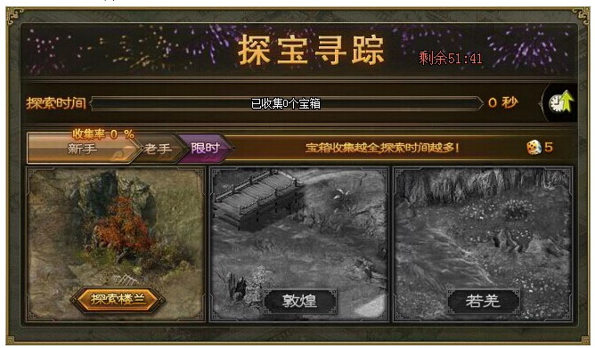 活动一、【全新探宝】勇闯三大古城,秘境限时寻宝! 古城探宝,全新升级,秘境开放,限时寻宝!楼兰、敦煌、若羌,三大古城蕴藏着经验、点券、镔铁、宝石、免费精炼次数等多种财宝。而 ...