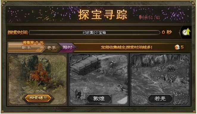 勇闯三大古城,秘境限时寻宝! 楼兰、敦煌、若羌,三大古城蕴藏着经验、点券、镔铁、宝石、免费精炼次数等多种财宝。限时秘境,宝箱多多,不用掷骰,自由抢宝!来吧!热血开始我们的探宝 ...