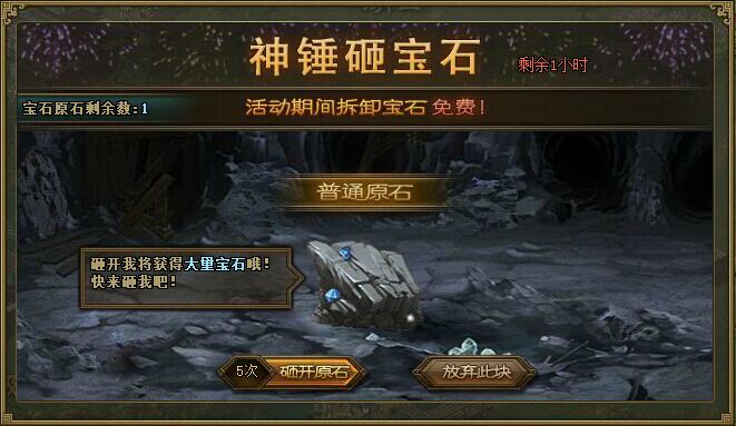 神锤砸宝石,免费摘宝石! 活动范围:12月1日(含)之前所有已开在线服 参与要求:开启宝石功能 活动时间:12月8日0点至24点 活动内容:活动期间,世界上会出现“宝石原石”事件、玩家可选中免费原石,也可花费金币 ...