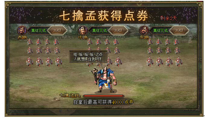 本帖最后由 鳳鳴岐山 于 2014-12-11 14:48 编辑 活动一【七擒孟获】三路大军连擒孟获,点券奖励大幅提高! 活动范围:12月4日(含)之前已开所有服 活动时间:12月11日15点至12月12日24点 参与条件:已开启世界地 ...