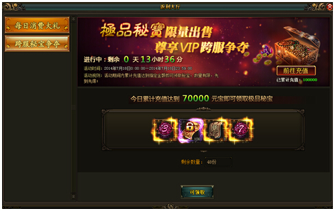 【风云无双】争夺极品秘宝(具体奖励内容以游戏中为准)VIP玩家的超级福利,全平台跨服争夺,尊享超级VIP特权,极品秘宝,限时出售,你心动了吗?【活动时间】: 2月3日-2月5日【活动范围】:除开服活动期间的服外全 ...