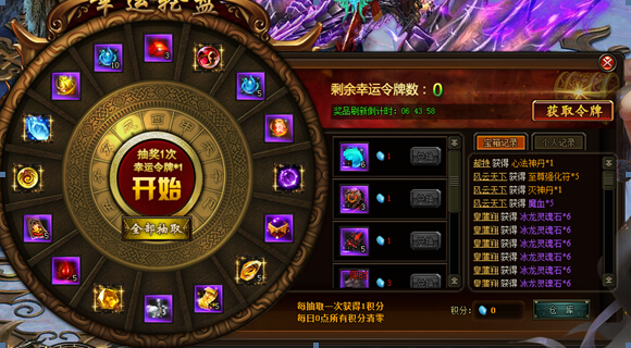 《风云无双》2月7日 幸运轮盘(具体奖励内容已游戏中为准)【活动时间】2月7日-2月9日【活动范围】未在开服活动中的区服【活动内容】活动期间,凡充值即可领取幸运令牌以及积分,幸运令牌可进行抽奖,积分可用来兑换 ...