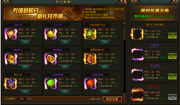 《风云无双》2月12日 积分商城(具体奖励内容以游戏中为准)玩家每进行充值10RMB就会获得10积分,积分可在积分商城处兑换道具,更有限时优惠兑换,会上架一些超值的道具供玩家限时兑换【活动时间】: 2月12日-2月13 ...