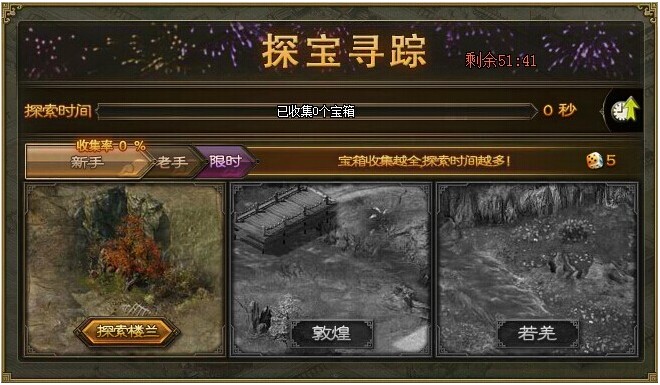 勇闯三大古城,秘境限时寻宝! 楼兰、敦煌、若羌,三大古城蕴藏着经验、点券、镔铁、宝石、免费精炼次数等多种财宝。限时秘境,宝箱多多,不用掷骰,自由抢宝!来吧!热血开始我们的探宝 ...