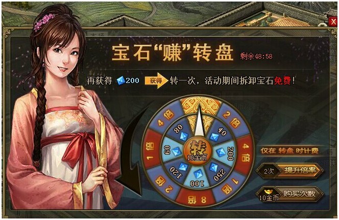 活动一镔铁宝石大转盘!要“赚”什么转什么! 活动范围:2月13日(含)之前已开所有服 活动时间:2月20日0点至24点 活动内容:活动期间,分别存在“宝石”和“转盘”两个转盘,按照自己的需要,可随心所欲的选择转 ...