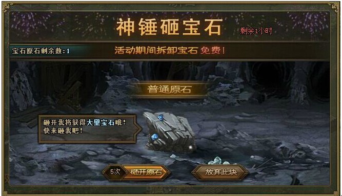 活动一神锤砸宝石,免费摘宝石! 活动范围:2月14日(含)之前所有已开在线服 参与要求:开启宝石功能 活动时间:2月21日0点至24点 活动内容:活动期间,世界上会出现“宝石原石”事件、玩家可选中免费原石,也可花 ...