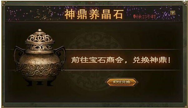 《攻城掠地》3月14日 神鼎养晶石,进阶更快更轻松! 活动范围:3月7日(含)之前已开所有服 活动时间:3月14日0点至24点参与条件:已拥有晶石,且开启宝石商会的玩家 活动内容:活动期间,通过宝石商会获得神鼎,使 ...