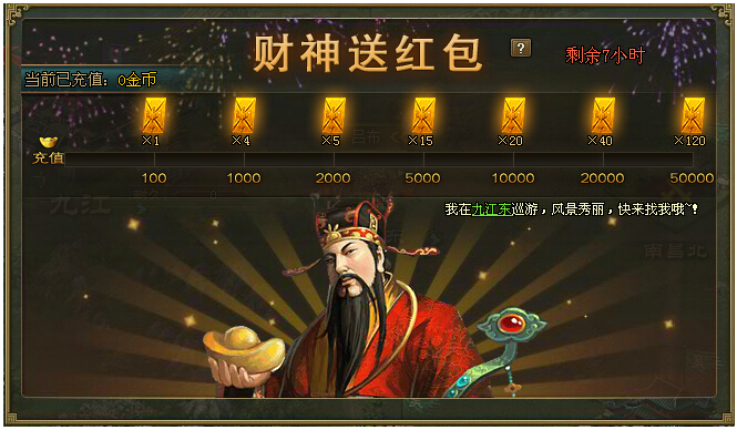 【限时1天】财神送红包,豪享缤纷好礼! 活动范围:3月8日(含)之前已开所有服 活动时间:3月15日0点至24点参与要求:所有玩家,但开启世界地图后才能获得普通红包活动内容:活动期间,通过充值可获得土豪金红包! ...