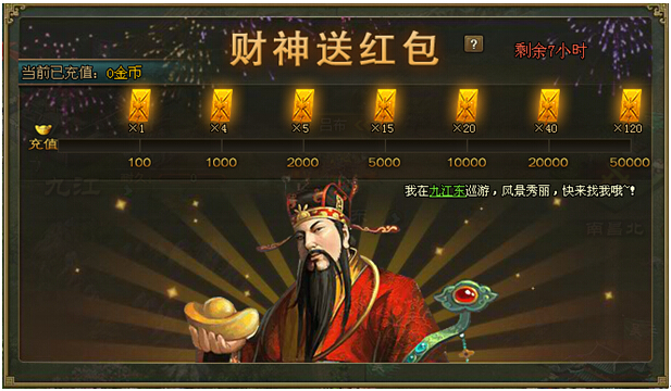 【庆新版】财神送红包,豪享缤纷好礼! 活动范围:3月13日(含)之前已开所有服 活动时间:3月20日0点至24点参与要求:所有玩家,但开启世界地图后才能获得普通红包活动内容:活动期间,通过充值可获得土豪金红包! ...
