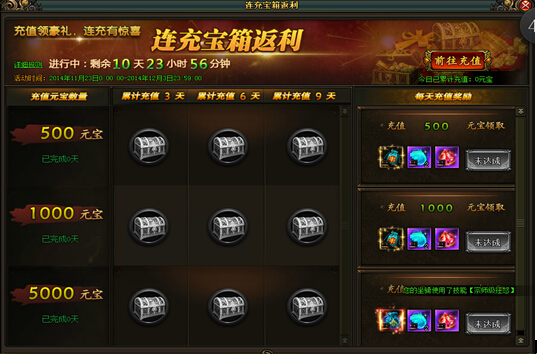 《风云无双》4月1日 连冲宝箱返利活动(具体奖励内容已游戏中为准) 【活动时间】4月1日-4月9日【活动内容】活动期间每日充值达到对应数量元宝,即可领取“每日充值奖励”;活动期间累计充值天数与充值元宝数均达到 ...