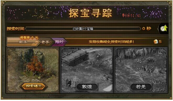 勇闯三大古城,秘境限时寻宝! 楼兰、敦煌、若羌,三大古城蕴藏着经验、点券、镔铁、宝石、免费精炼次数等多种财宝。限时秘境,宝箱多多,不用掷骰,自由抢宝!来吧!热血开始我们的探宝 ...