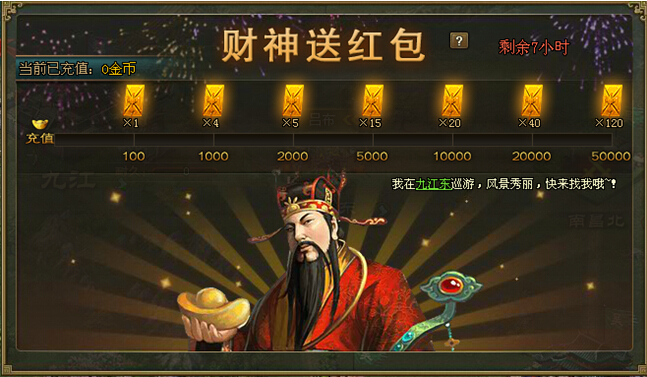 《攻城掠地》4月23日活动公告 活动一财神送红包,豪享缤纷好礼! 活动范围:4月16日(含)之前已开所有服 活动时间:4月23日0点至24点参与要求:所有玩家,但开启世界地图后才能获得普通红包活动内容:活动期间,通 ...
