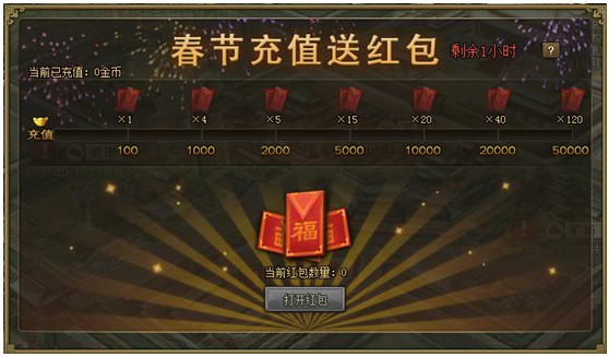 本帖最后由 夏日大猫熊 于 2014-1-31 13:25 编辑 送红包拉!累计充值送红包,多充多送!活动范围:1月28日(含)之前已开所有服活动时间:1月31日0点至2月6日24点活动内容:活动期间,满足下列充值额度就能获得红 ...
