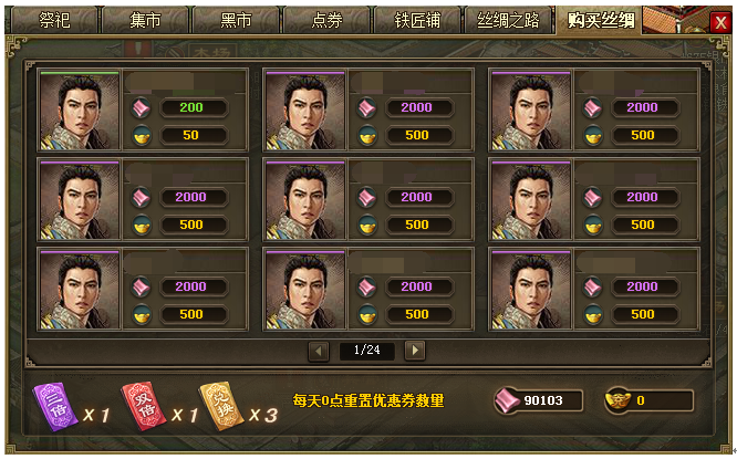 丝绸商铺3天大酬宾,首日免费赠送丝绸优惠券! 活动范围:6月24日(含)之前所有已开在线服活动时间:7月24日0点至7月26日24点参与条件:已开启丝绸之路的玩家活动内容:1. 活动 ...
