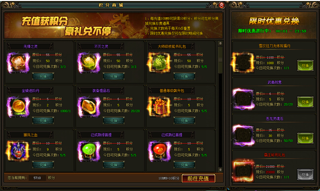 《风云无双》8月12日 积分商城(具体奖励内容以游戏中为准)玩家每进行充值10RMB就会获得10积分,积分可在积分商城处兑换道具,更有限时优惠兑换,会上架一些超值的道具供玩家限时兑换【活动时间】:8月12日-8月14日 ...