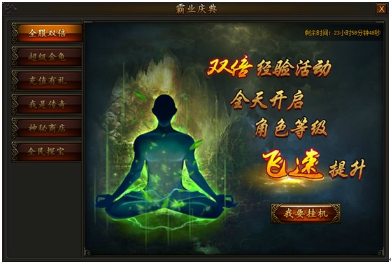 霸业庆典震撼来袭,更多丰厚奖励等你拿! 活动一:全服双倍活动时间:2015年10月30日全天全服双倍经验限时开启,打怪升级效率翻倍,双倍经验效果可和经验卷轴叠加,海量经验爽歪歪~ ...