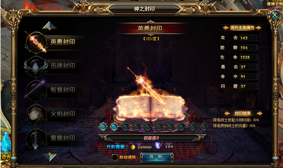 神之封印系统说明 开启条件:获得任意一个封印道具。功能激活后 封印提升封印升星:封印升星需要消耗一定的金币和战魂值。每次升星成功封印效果都会相应的增加。升星也会增加相应的战斗力。封印突破:封印达到10 ...