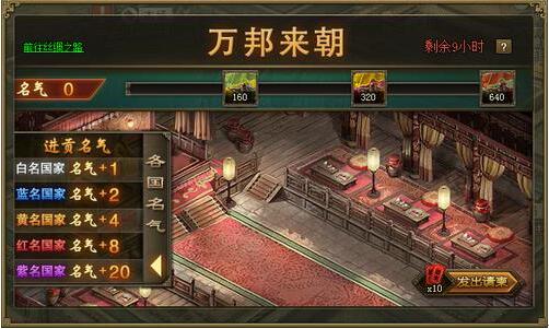 本帖最后由 冥王Fan 于 2015-11-23 22:51 编辑 《攻城掠地》11月23日 活动公告 【迎新版】万邦来朝,丝绸、锦囊等豪礼不停! 迎新特别活动第三波闪亮登场,11月23日至11月24日连续两天丝绸福利活动“万邦来朝” ...