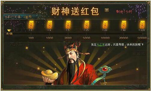 财神送红包、万邦来朝、超级翻牌、精炼大放送 活动一:财神送红包,豪享缤纷好礼!活动范围:11月28日(含)之前已开所有服 活动时间:12月28日0点至24点参与要求:所有玩家,但开启世界地图后才能获得普通红包活动 ...