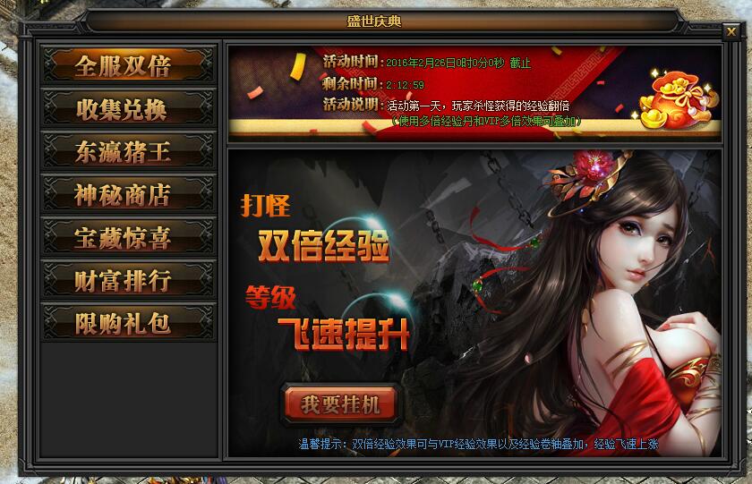 传奇盛世之二月庆典 一:全服双倍活动时间:2月25号-2月27号活动详情:活 ...
