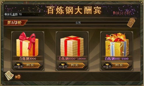 百炼钢大酬宾、超级翻牌、宝石矿脉、天降神剑、洗练开光活动一:百炼钢大酬宾,福利大狂欢! 百炼钢大酬宾,限时1天真情回馈!活动开启后,海量百炼钢大放送,助各位将军一臂之力,快速冲击“神兵”,早日擒获猛将孟 ...