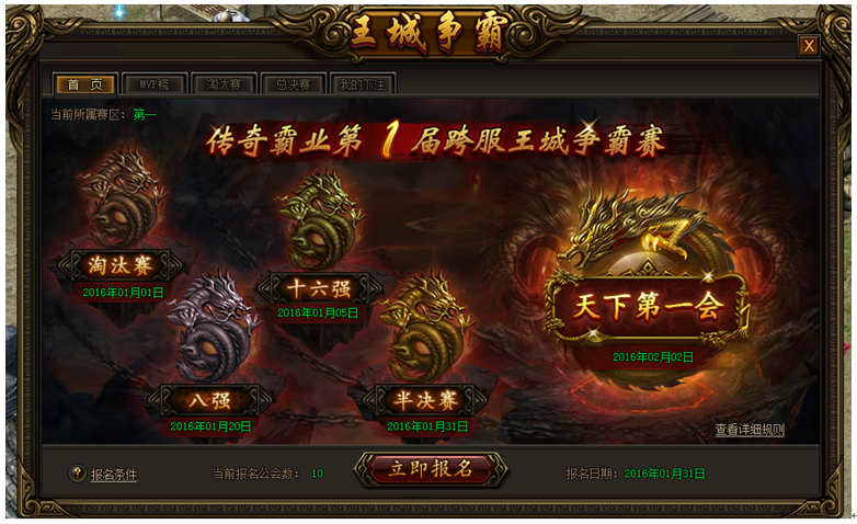 本帖最后由 大猫和小老鼠 于 2016-4-22 13:39 编辑 报名时间:2016年4月27日(由22日更改为27日)【报名及参赛规则】 报名期间,会长或副会长可在王城争霸界面进行操作,报名参与王城争霸。 &n ...