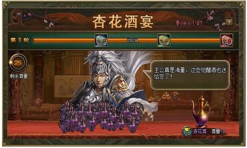 杏花酒宴、钢铁倾销 活动一:杏花酒宴,觉醒酒大赠送! 杏花村大设酒宴,广招各路英雄品正宗杏花酒;活动期间,更有海量珍藏好久大放送,预祝各位早日觉醒各神将,独霸战场,称雄一方! 活动范围:3月23日(含)之 ...