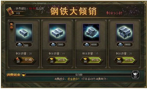 充值砸元宝、钢铁倾销 活动一:充值砸元宝,财神送好礼!活动范围:4月4日(含)之前已开所有服活动时间:5月4日0点至24点参与要求:已开启世界地图的玩家活动内容:活动期间,通过充值可获得金元宝!或在世界地图 ...