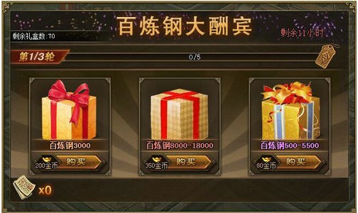 百炼钢大酬宾、宝石矿脉、犒赏三军 活动一:百炼钢大酬宾,福利大狂欢! 百炼钢大酬宾,限时1天真情回馈!活动开启后,海量百炼钢大放送,助各位将军一臂之力,快速冲击“神兵”,早日擒获猛将孟获! 活动范围:4月 ...