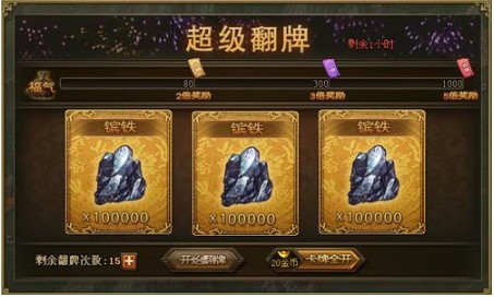 充值返金、超级翻牌、精炼大放送、钢铁倾销、七擒孟获、天降神剑 活动一:累计充值送“金”喜,多充多送!活动范围:4月29日(含)之前已开所有服活动时间:5月29日0点至5月30日24点活动内容:活动期间,满足下列充 ...