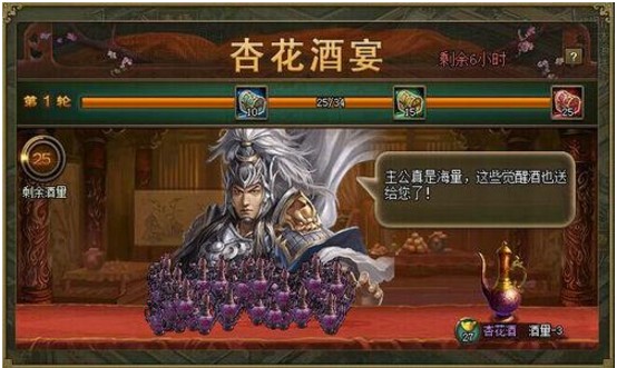 杏花酒宴、天降神剑 活动一:杏花酒宴,觉醒酒大赠送! 杏花村大设酒宴,广招各路英雄品正宗杏花酒;活动期间,更有海量珍藏好久大放送,预祝各位早日觉醒各神将,独霸战场,称雄一方! 活动范围:8月18日(含)之 ...