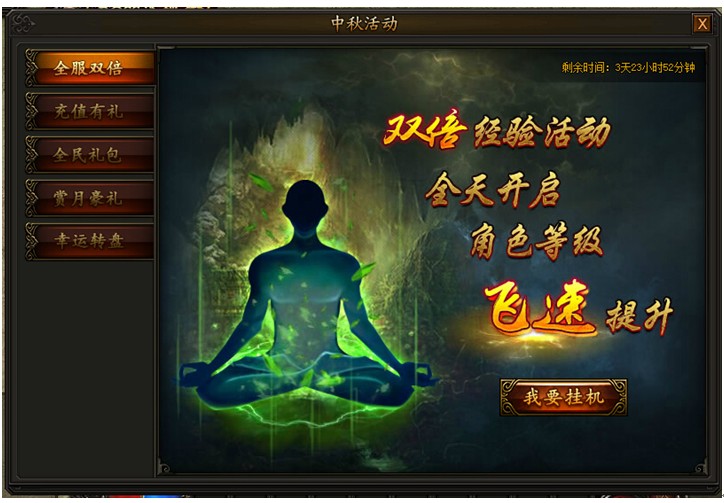 情满中秋,海量材料送不停! 1. 全服双倍活动时间:2016年9月14日00:00 — 9月17日23:59活动期间内即可获得双倍经验效果加成,可与其他双倍经验叠加。 ...