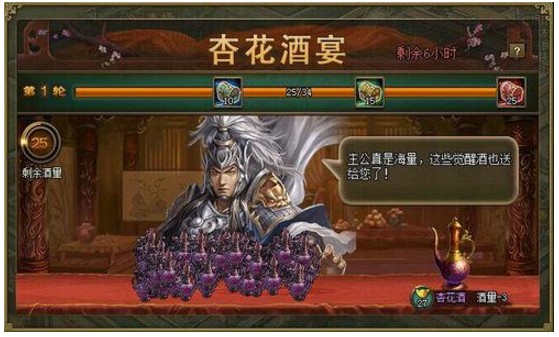 杏花酒宴、宝石矿脉、精炼大放送、钢铁倾销 活动一:杏花酒宴,觉醒酒大赠送! 杏花村大设酒宴,广招各路英雄品正宗杏花酒;活动期间,更有海量珍藏好久大放送,预祝各位早日觉醒各神将,独霸战场,称雄一方! 活动 ...