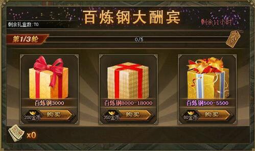 百炼钢大酬宾、洗练开光、犒赏三军 活动一:百炼钢大酬宾,福利大狂欢! 百炼钢大酬宾,限时1天真情回馈!活动开启后,海量百炼钢大放送,助各位将军一臂之力,快速冲击“神兵”,早日擒获猛将孟获! 活动范围:10 ...