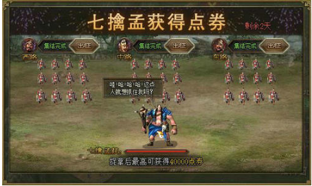 七擒孟获、犒赏三军 活动一:三路大军连擒孟获,宝箱连开点券狂送!活动范围:10月28日(含)之前已开所有服 活动时间:11月17日0点至11月18日24点 参与条件:已开启世界地图 活动玩法:活动期间,通过任意战斗中的 ...