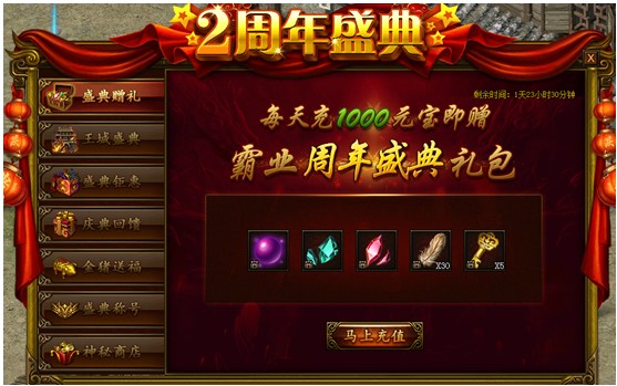 传奇霸业二周年盛典,七重福利回馈嗨翻天。福利第一波,海量赠礼天天拿;福利第二波,群雄争霸主王城;福利第三波,盛典钜惠限时享;福利第四波,庆典大回馈,时装免费送;福利第五波,金猪送福捡不停;福利第六波, ...