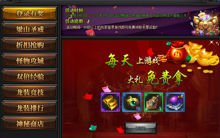 月末庆典时间:9月26日—9月28日1. 登陆有礼 活动期间,玩家可以在神秘商店购买超值道具玩家可花费元宝立即刷新道具,也可购买完当前道具后刷新 ...