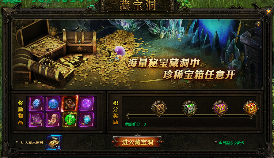 藏宝洞活动时间:2017.10.1400:00:00 -23:59:59活动范围:大师100级以上的玩家活动内容:1、活动期间,参加奇迹大陆、仙踪林副本、野外地图杀怪等玩法有机会获得藏宝图;2、消耗藏宝图或者钻石可以进入藏宝洞寻宝, ...