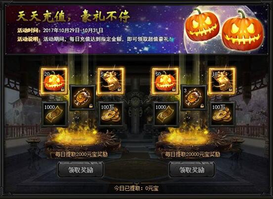 《传奇荣耀》中秋节活动 一、 充值有礼【活动时间】10月29日-10月31日【活动范围】全服【活动内容】活动期间,每日累计充值达到指定金额,即可领取超值豪礼! ...