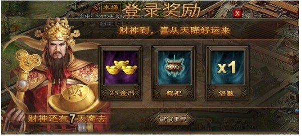 财神到、御宝冲刺、【新】消费送礼、【新】讨伐董卓、长坂突围、百炼钢大酬宾、犒赏三军 活动一:财神到,喜从天降好运来! 活动范围:11月11日(含)之前已开所有服活动时间:12月1日0点至12月2日24点 活动内容: ...