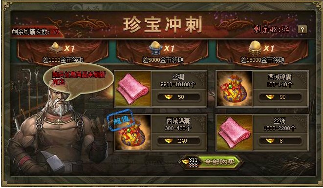 冲珍宝捣黄龙,擒孟获砸宝石 活动一:珍宝冲刺,圆你十珍梦! 活动范围:1月10日(含)之前已开所有服 活动时间:1月30日0点至24点 活动内容:活动期间,在活动界面可以购买丝绸、锦囊、珍宝碎片等道具。购买金额达 ...