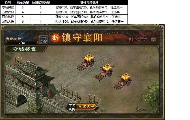 镇守襄阳赏武将,洗炼开光双重奏 活动一:镇守襄阳,押扣敌资获陨铁!活动范围:4月14日(含)之前已开所有服 活动时间:5月4日0点至24点 参与要求:开启【打造战车】科技的玩家 活动内容:活动期间,镇守襄阳城门 ...