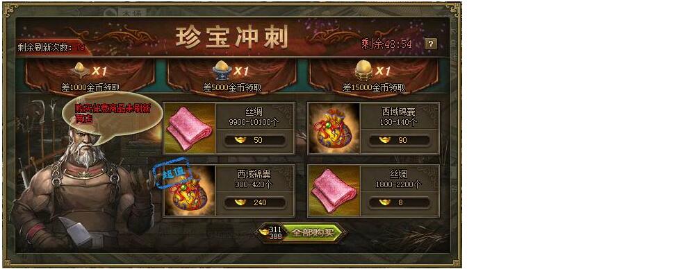 长坂突围获佳酿、直捣黄龙讨董卓 活动一:珍宝冲刺,圆你十珍梦! 活动范围:7月23日(含)之前已开所有服 活动时间:8月12日0点至24点 参与条件:已开启丝绸之路的玩家 活动内容:活动期间,在活动界面可以购买丝 ...