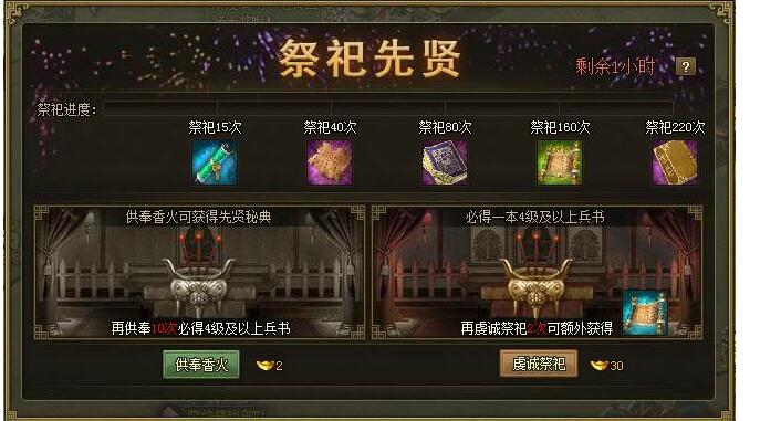 天降神剑擒孟获,祭祀先贤获秘典 活动一:祭祀先贤,获阵法秘典! 活动范围:8月8日(含)之前已开所有服 活动时间:8月28日0点至24点 参与条件:210级(含)以上,已开启阵法的玩家 活动内容:活动期间,在活动界 ...